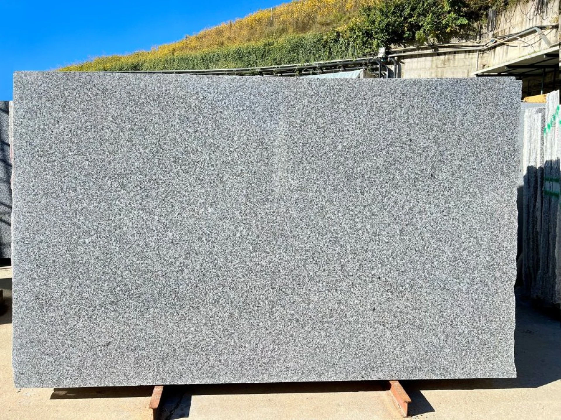 < Torna indietro GRIGIO TARN Tipologia: GRANITO Codice blocco: 25B317 N. Lastre: 1 Lunghezza: 255 cm Altezza: 190 cm Spessori disponibili: 3 CM. Finiture disponibili: LUCIDO