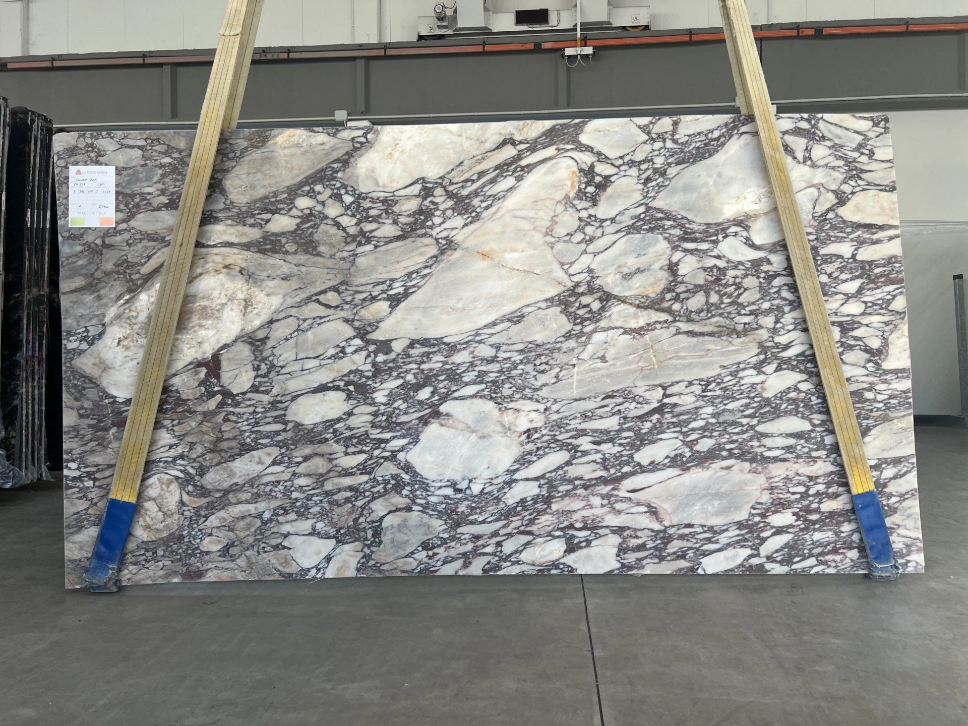 < Torna indietro CALACATTA VIOLA Tipologia: MARMO Codice blocco: 24B259 N. Lastre: 29 Lunghezza: 290 cm Altezza: 155 cm Spessori disponibili: 3 CM. Finiture disponibili: LEVIGATO