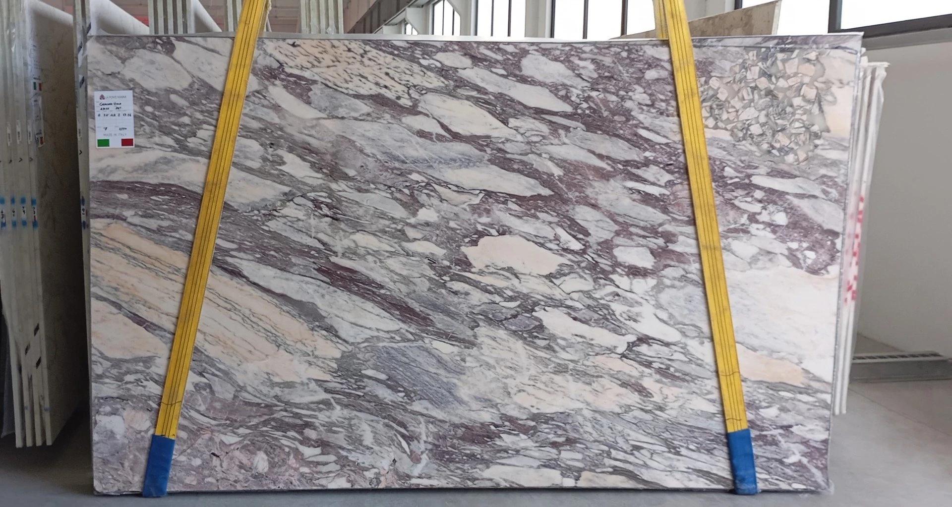 < Torna indietro CALACATTA VIOLA Tipologia: MARMO Codice blocco: A3051 N. Lastre: 17 Lunghezza: 314 cm Altezza: 172 cm Spessori disponibili: 2 CM. Finiture disponibili: LUCIDO