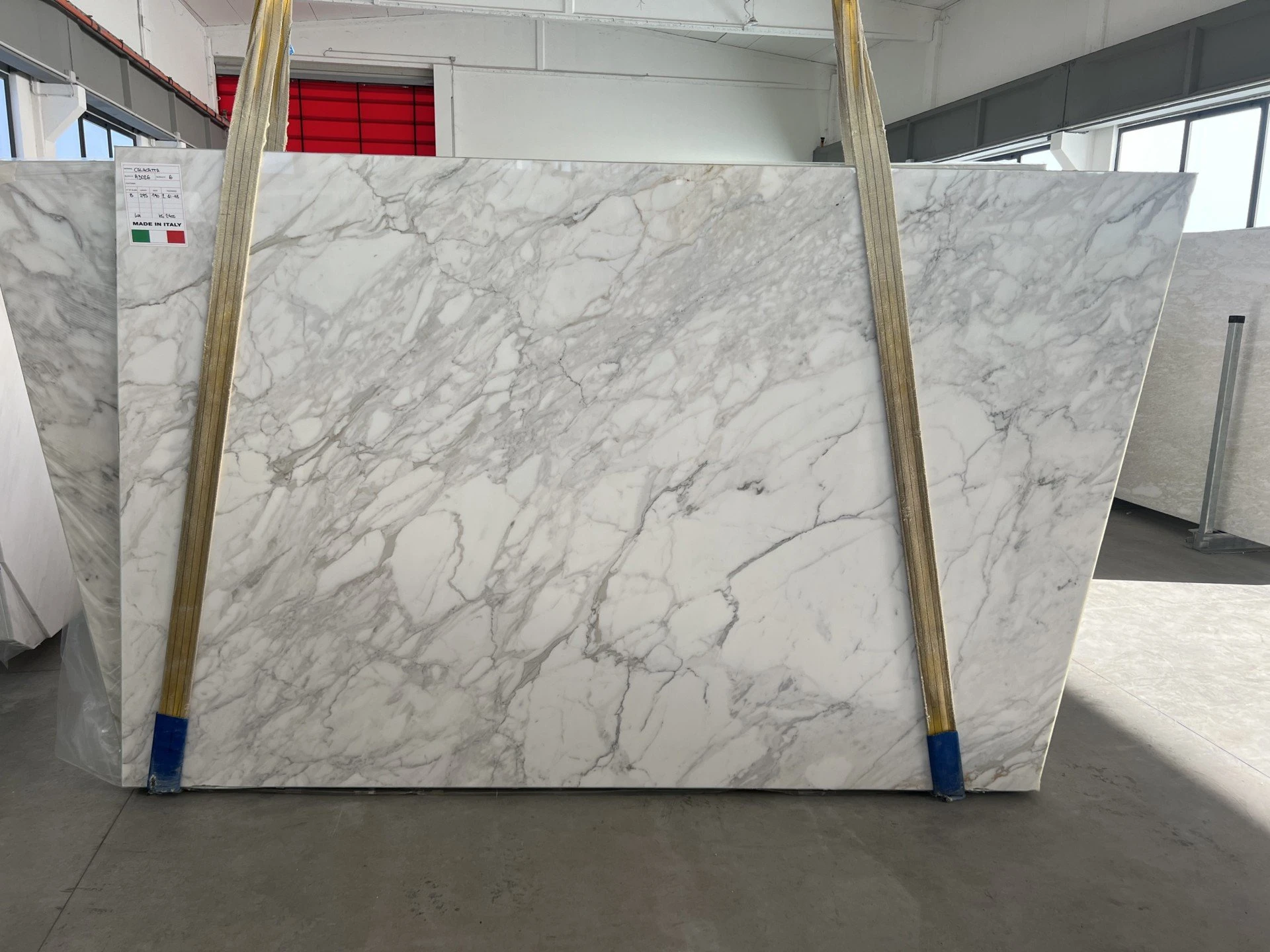 < Torna indietro CALACATTA Tipologia: MARMO Codice blocco: A3026 N. Lastre: 13 Lunghezza: 295 cm Altezza: 190 cm Spessori disponibili: 2 CM. Finiture disponibili: LUCIDO
