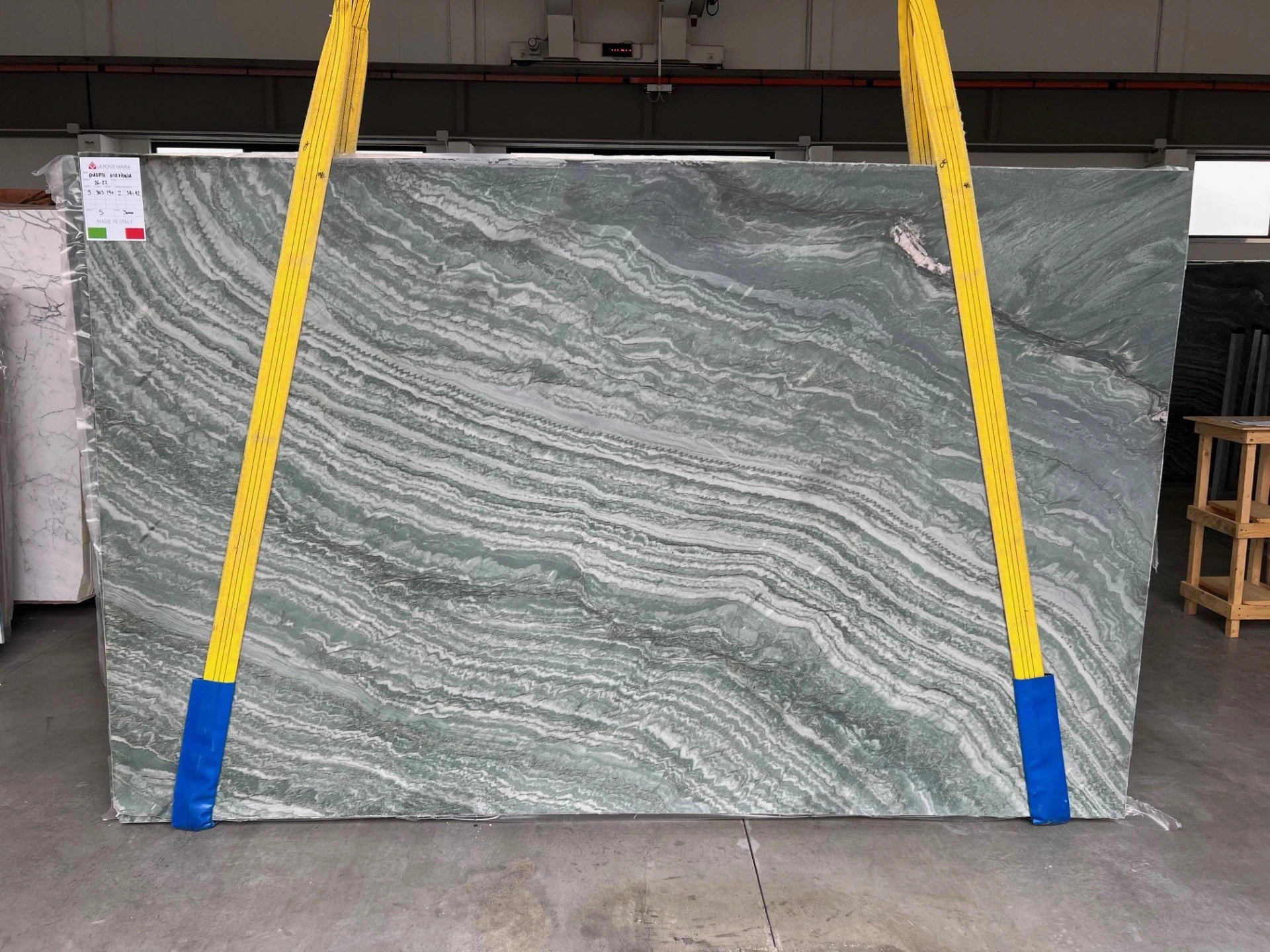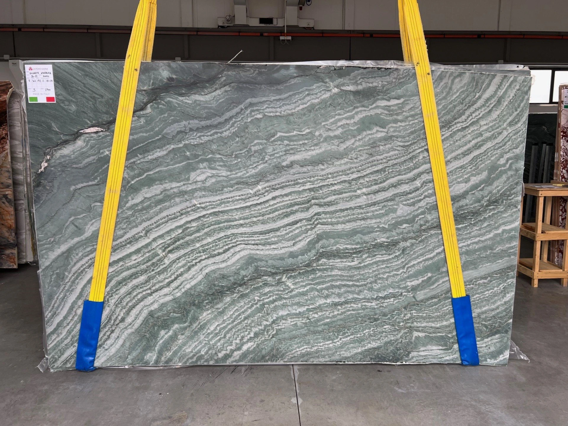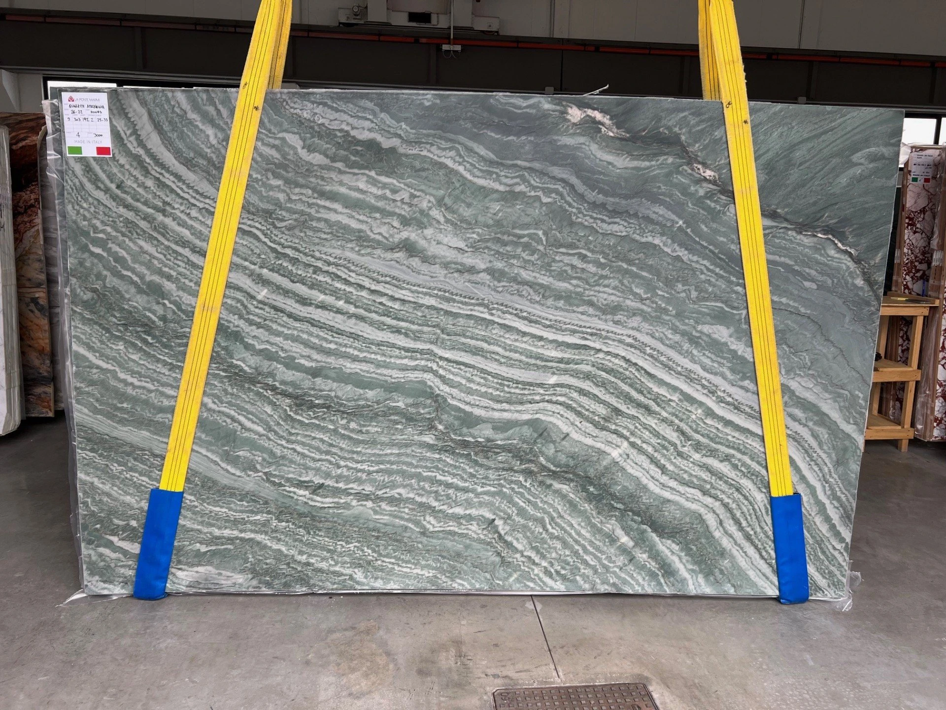 < Torna indietro QUARZITE AMAZZONIA Tipologia: QUARZITE Codice blocco: 26B022 N. Lastre: 43 Lunghezza: 300 cm Altezza: 180 cm Spessori disponibili: 2 CM. Finiture disponibili: LEVIGATO