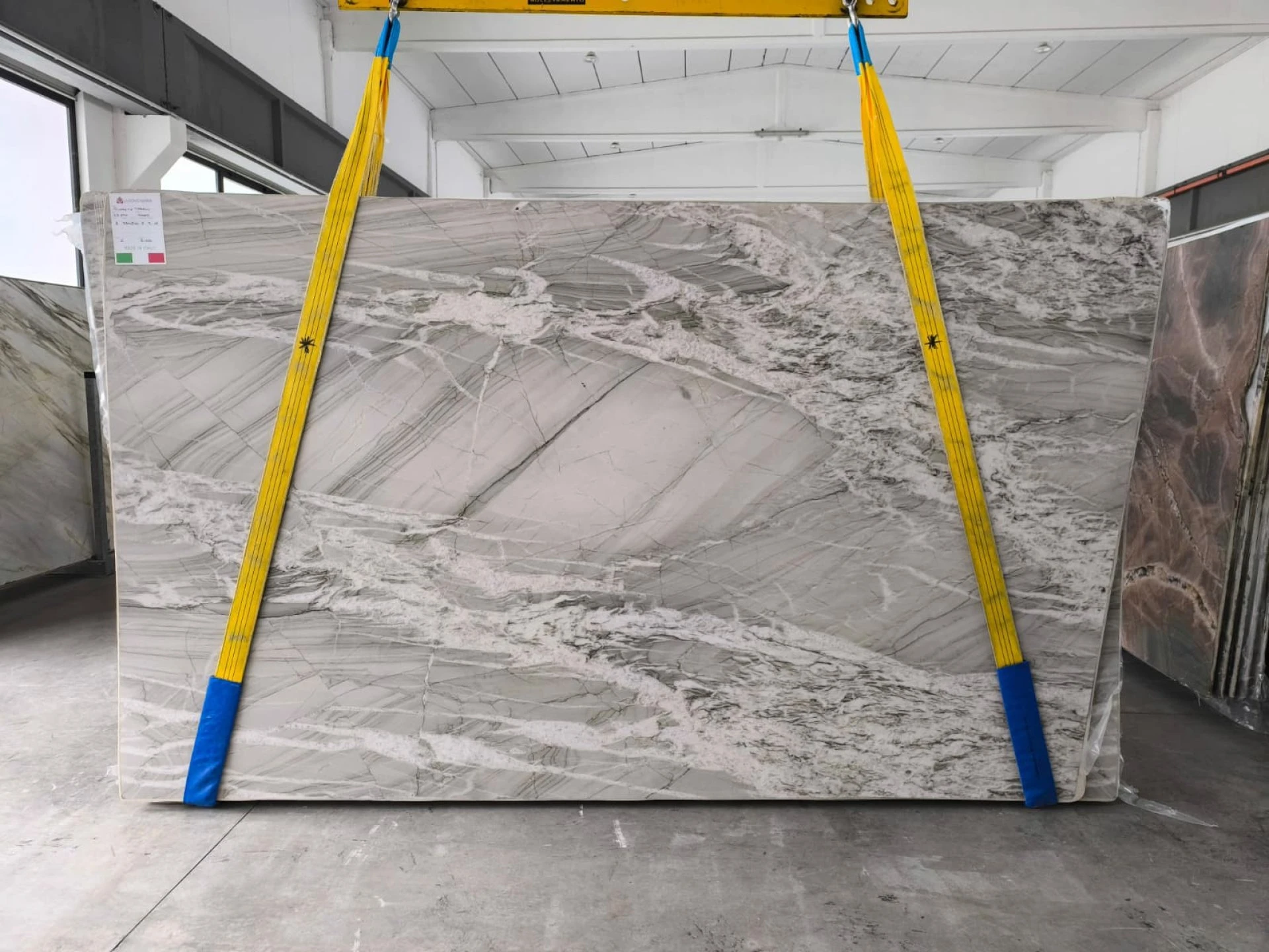 < Torna indietro QUARZITE TIFFANY Tipologia: QUARZITE Codice blocco: 25B290 N. Lastre: 31 Lunghezza: 320 cm Altezza: 190 cm Spessori disponibili: 2 CM. Finiture disponibili: LEVIGATO